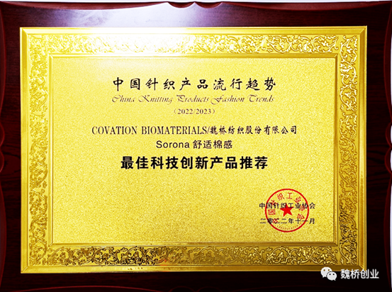 在中國針織工業協會與中國國際貿易促進委員會紡織行業分會共同主辦的中國針織產品流行趨勢發布活動中,魏橋紡織股份有限公司申報的“sorona舒適棉感”產品經中國針織工業協會專家組審定,獲評“最佳科技創新產品推薦”。